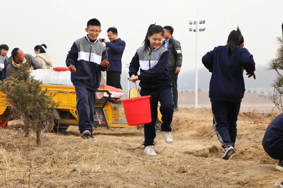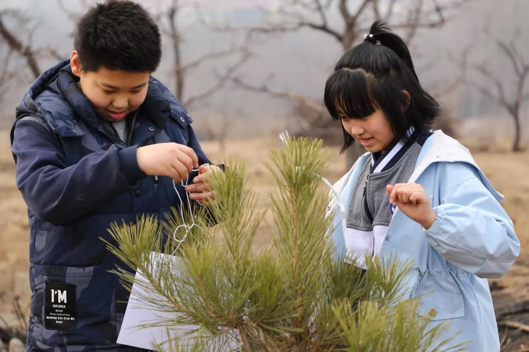 种植一份希望,梦想一片未来。以班级为单位,每班的学生把写有寄语的心愿卡系在了自己栽种的松树上。从学生微笑的脸庞上,我们能感受到他们满满的喜悦和成就感。