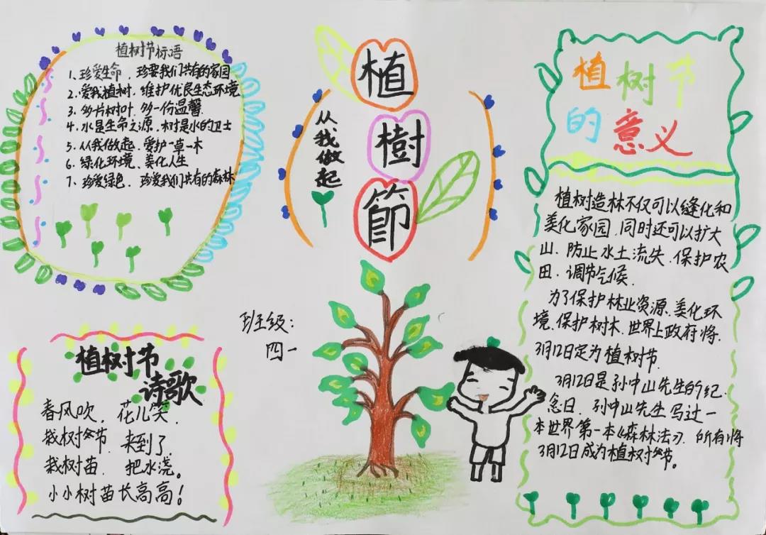 每一张手抄报皆是全班同学智慧的结晶,他们以植树节活动为切入点,把“植树、护树、爱绿”的生态文明观念融入在每一幅画与字里行间之中。